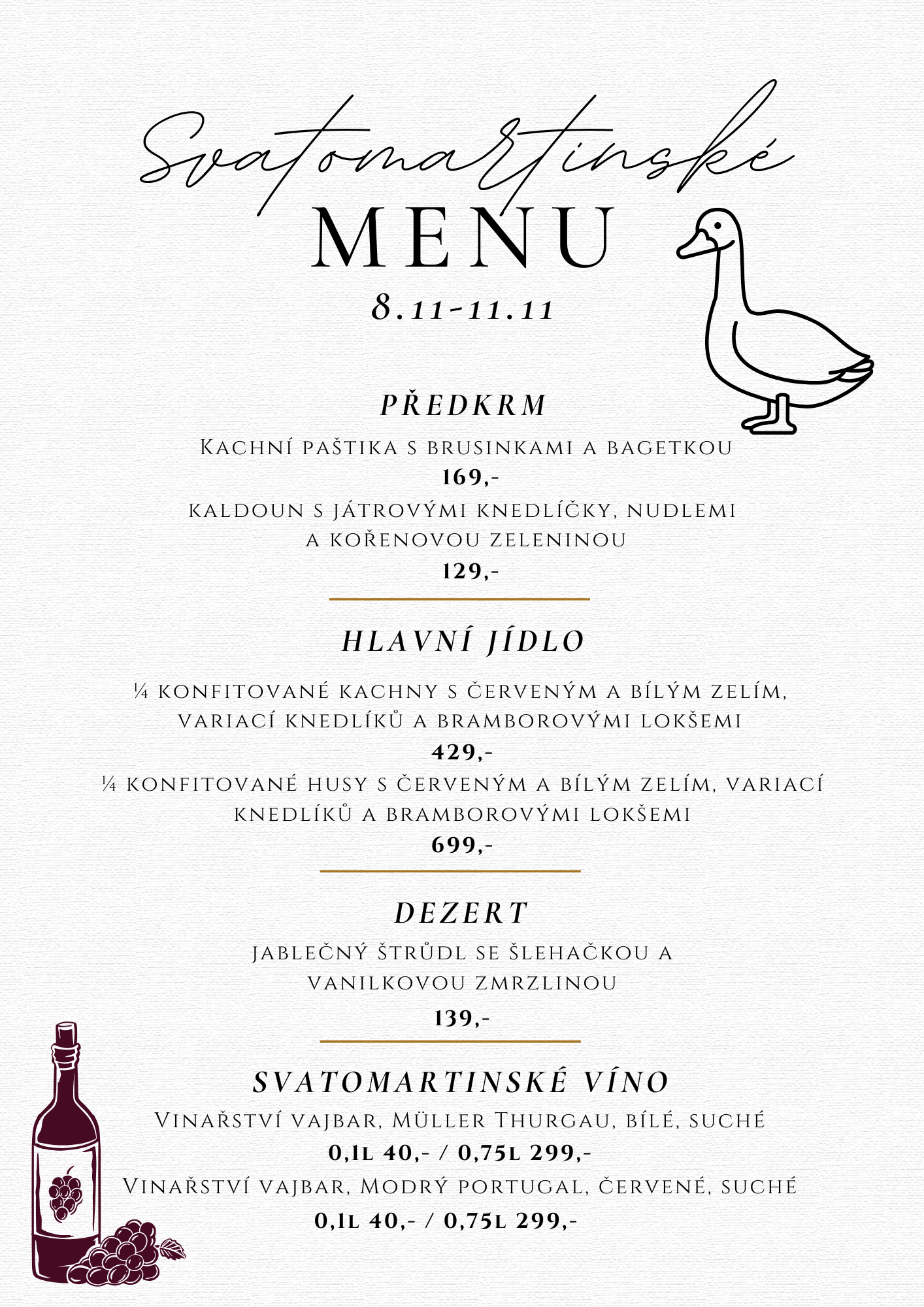 Skvělá česká kuchyně v moderním pojetí s důrazem na čerstvost surovin bez použití dochucovadel a umělých přísad. Pocit jedinečnosti dodává i naše profesionální obsluha.